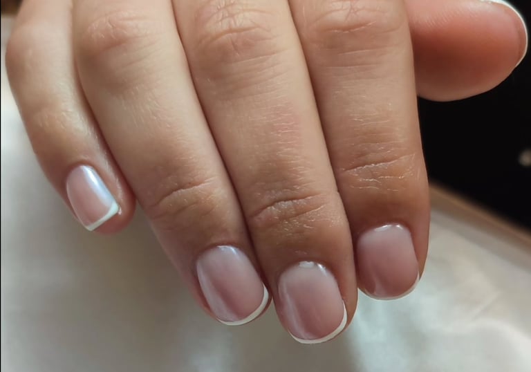 Le renfort se fait sur les ongles naturels avec des matières souples, souvent des bases ou gels légers.